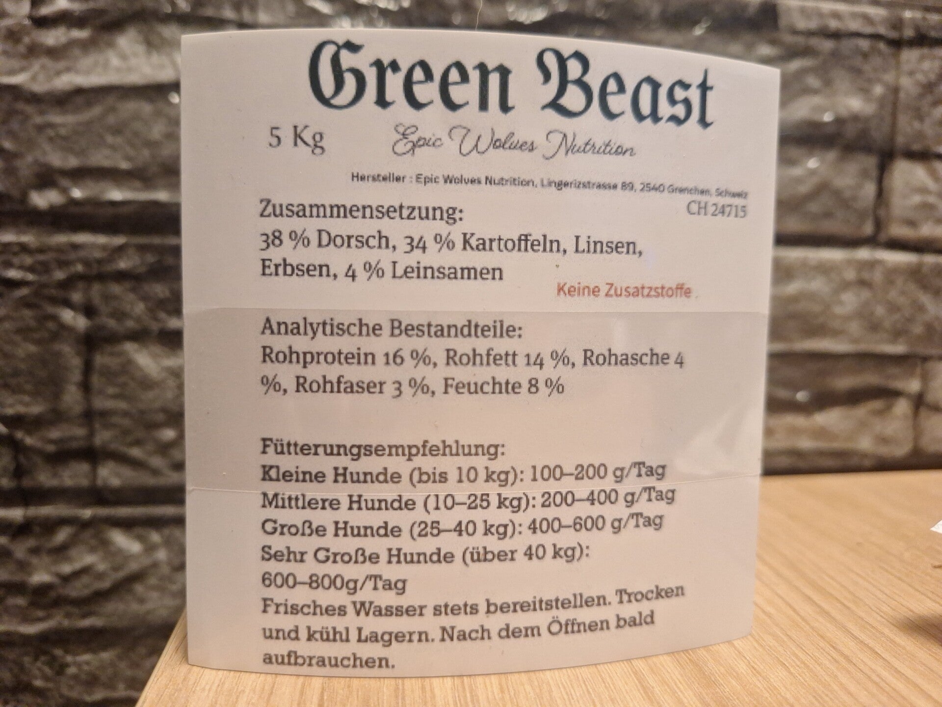Entdecke Green Beast, die rein pflanzliche Rezeptur von Epic Wolves Nutrition, konzipiert für Hunde, die natürliche Ernährung, hohe Verträglichkeit und ethische Zutaten vereinen wollen. Dieses Premium-Futter basiert vollständig auf pflanzlichen Proteinquellen wie Linsen, hochwertigem Gemüse und bekömmlichen Kartoffeln und liefert deinem Hund eine vollwertige, ausgewogene Ernährung – ganz ohne tierisches Protein.